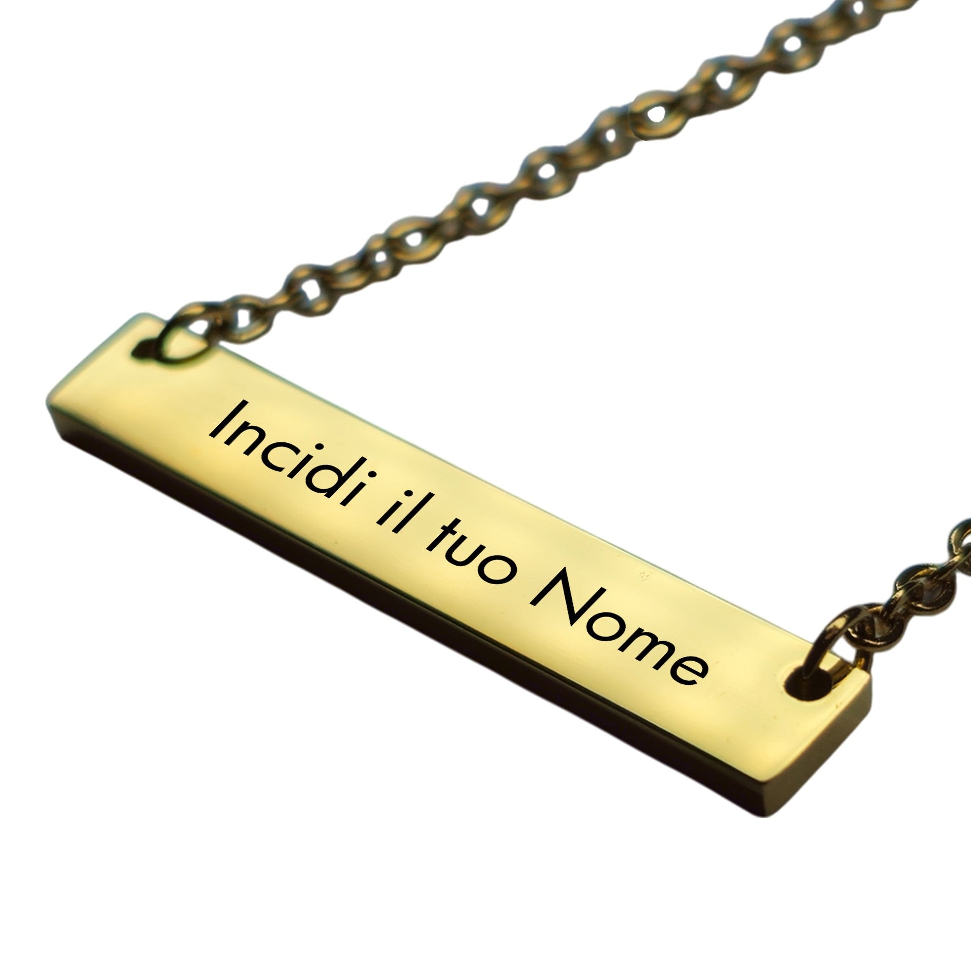 - Dimensioni ciondolo: 3,5 cm x 0,5 cm x 0,2 cm